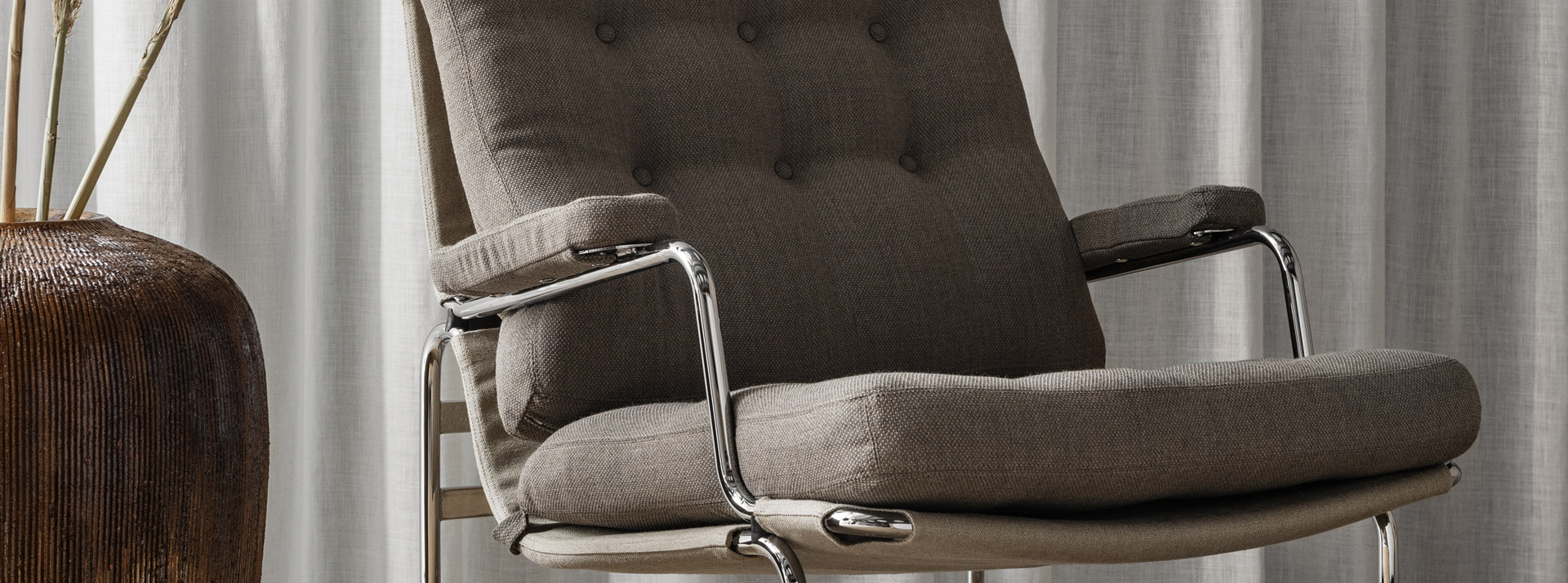 The centenary Spider Lounge provides enduring comfort for excellent relaxation, with ten foam cushions that feature the same spring system used in our beds. These are wrapped in an earthtone, teba olive upholstery from luxury fabric designer Black Edition. The production of this unique material combines traditional weaving methods with state-of-the-art printing technology to create a truly stunning impression
